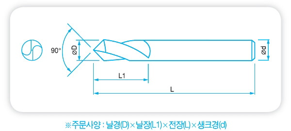 알루미늄 합금 전용공구 - 날 끝각(Point Angle) : 90˚