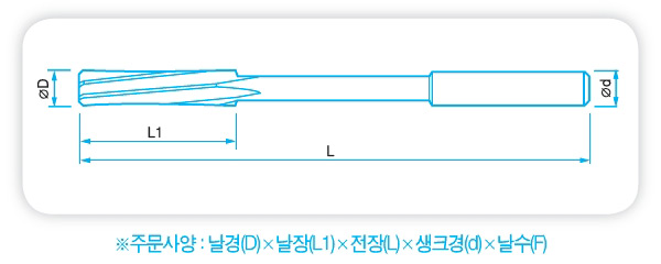 드릴작업 후 리밍 가공을 하는 공구로 정밀금형 가공용에 적합하며, 절삭성 및 안정성 강화로 칩 배출이 용이하고 직진성이 탁월하며 표면조도가 우수함.